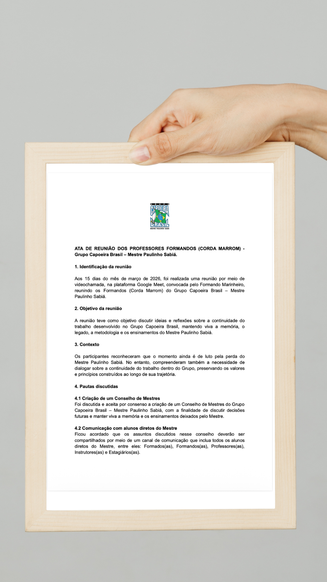 É com profundo respeito, senso de responsabilidade e compromisso com a nossa história que publicamos este primeiro comunicado oficial do Conselho de Mestres do Grupo Capoeira Brasil – Mestre Paulinho Sabiá.Este espaço nasce em um momento de grande tristeza, reflexão e união para toda a nossa comunidade. Diante da partida do nosso querido Mestre Paulinho Sabiá, sentimos a necessidade de criar um canal oficial de comunicação que possa orientar, informar e aproximar todos aqueles que fazem parte de sua trajetória e de seu legado.Mais do que um anúncio institucional, este comunicado representa o início de um esforço coletivo para preservar a memória do Mestre, honrar seus ensinamentos e dar continuidade, com seriedade e respeito, ao trabalho que ele construiu ao longo de tantos anos.